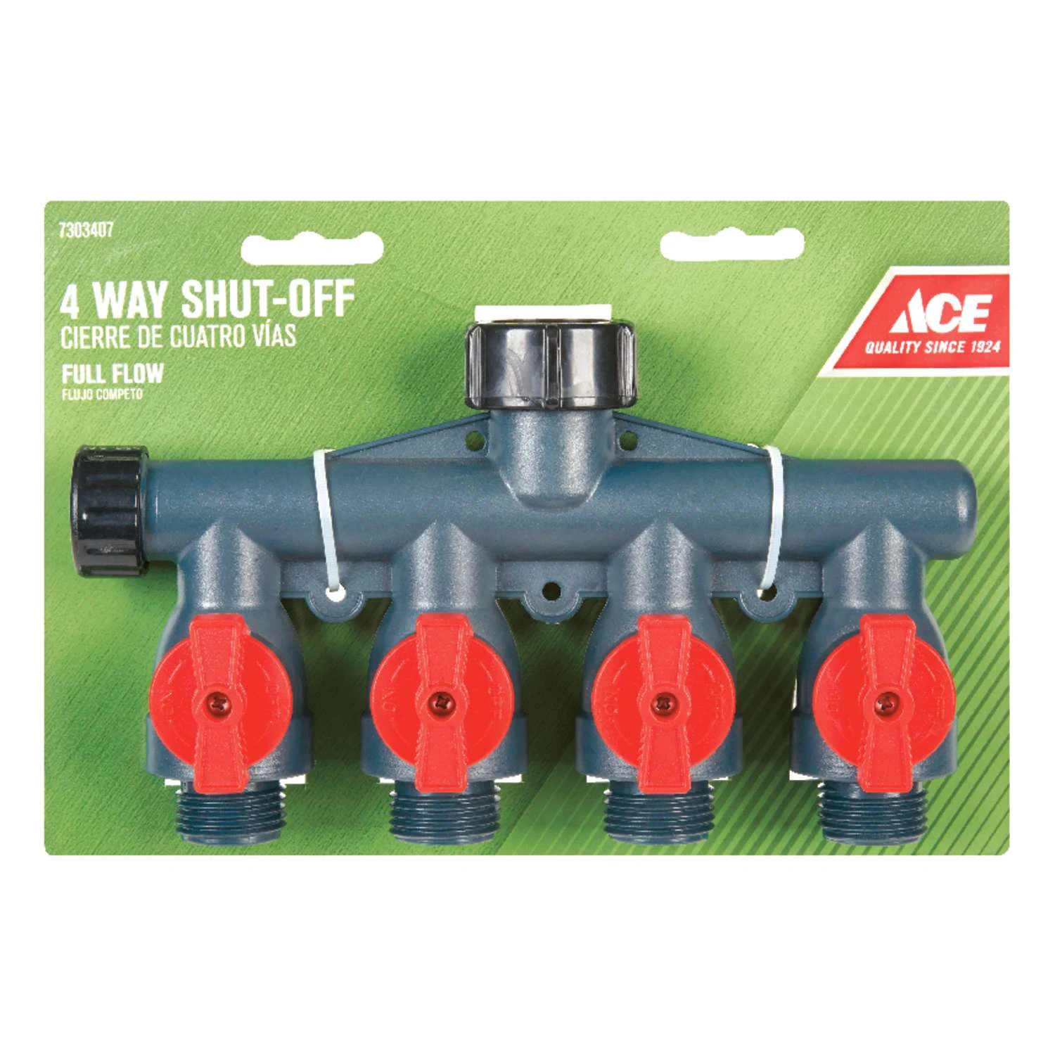 Use this poly 4-way shut-off to control water flow to your watering accessories. A free-spinning coupling nut allows you easily attach it to faucet. Large size allows greater water flow Large knob for easy operation Durable poly construction Four independent shut-offs