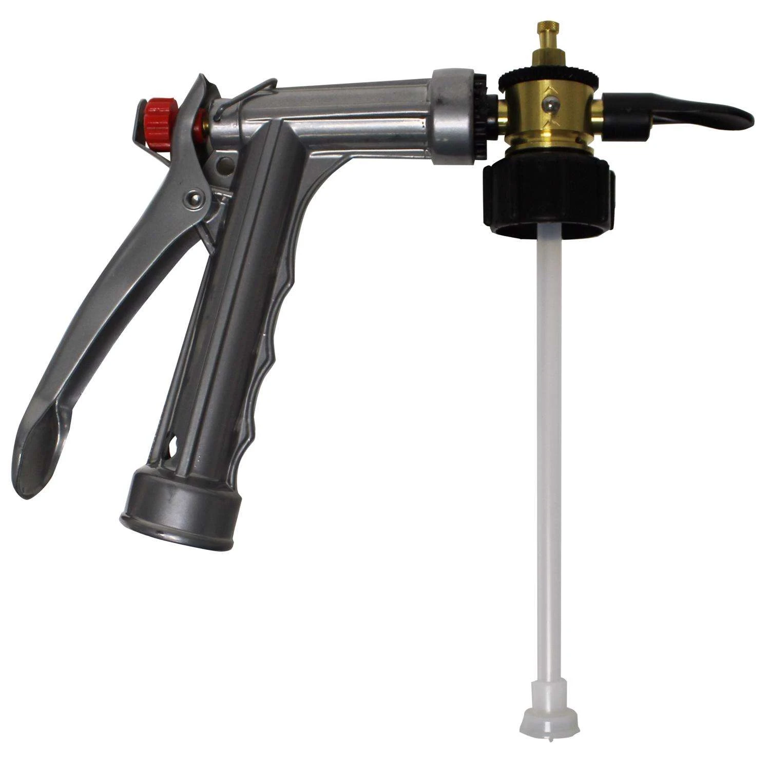 The Professional All Purpose sprayer fits onto any hose end and offers 16 mixing ratios, durable brass mixing head and sprays up to 100 gallons. A built-in anti-siphon feature prevents backflow. 3 simple steps: Fill, Set, Spray! It automatically mixes liquid concentrate with water. Fits onto any hose end Adjustable rate precision dial offers 16 mixing ratios Sprays up to 100 gallons of metered product Built-in anti-siphon feature prevents backflow Fill, set, spray! it automatically mixes liquid concentrate with water