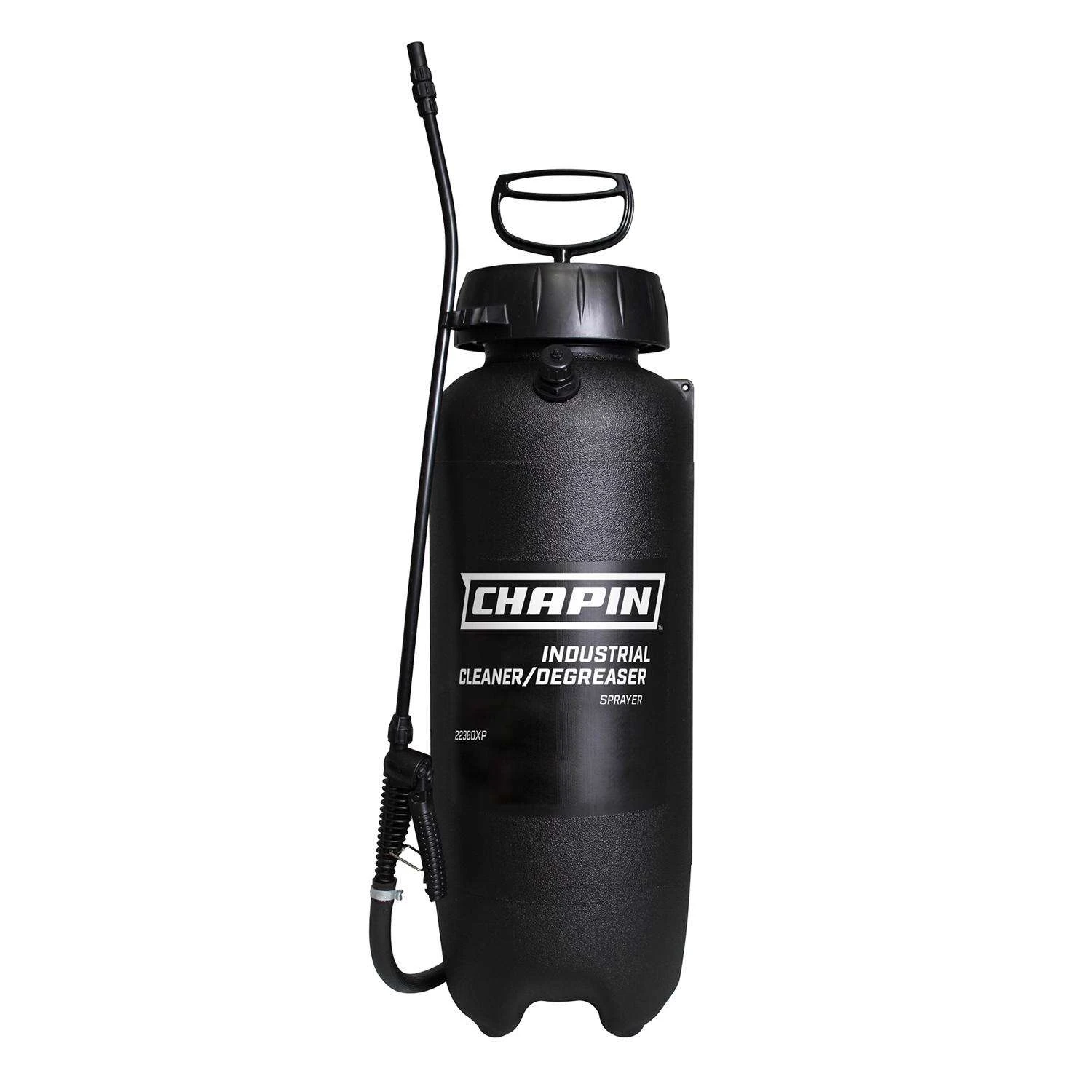 The Chapin Industrial Cleaner/Degreaser Sprayer is specifically designed for a variety of cleaners and degreasers used on HVAC, heavy equipment, engines and more. The 3-gallon poly tank comes with a wide 4-inch mouth opening for easy filling and cleaning. Adjustable poly cone nozzle sprays coarse stream to a fine mist. Featuring a pressure relief valve and lock-off feature to prevent accidental discharge. Viton seals and gaskets to handle a variety of chemicals General purpose cleaning Durability and easy cleaning