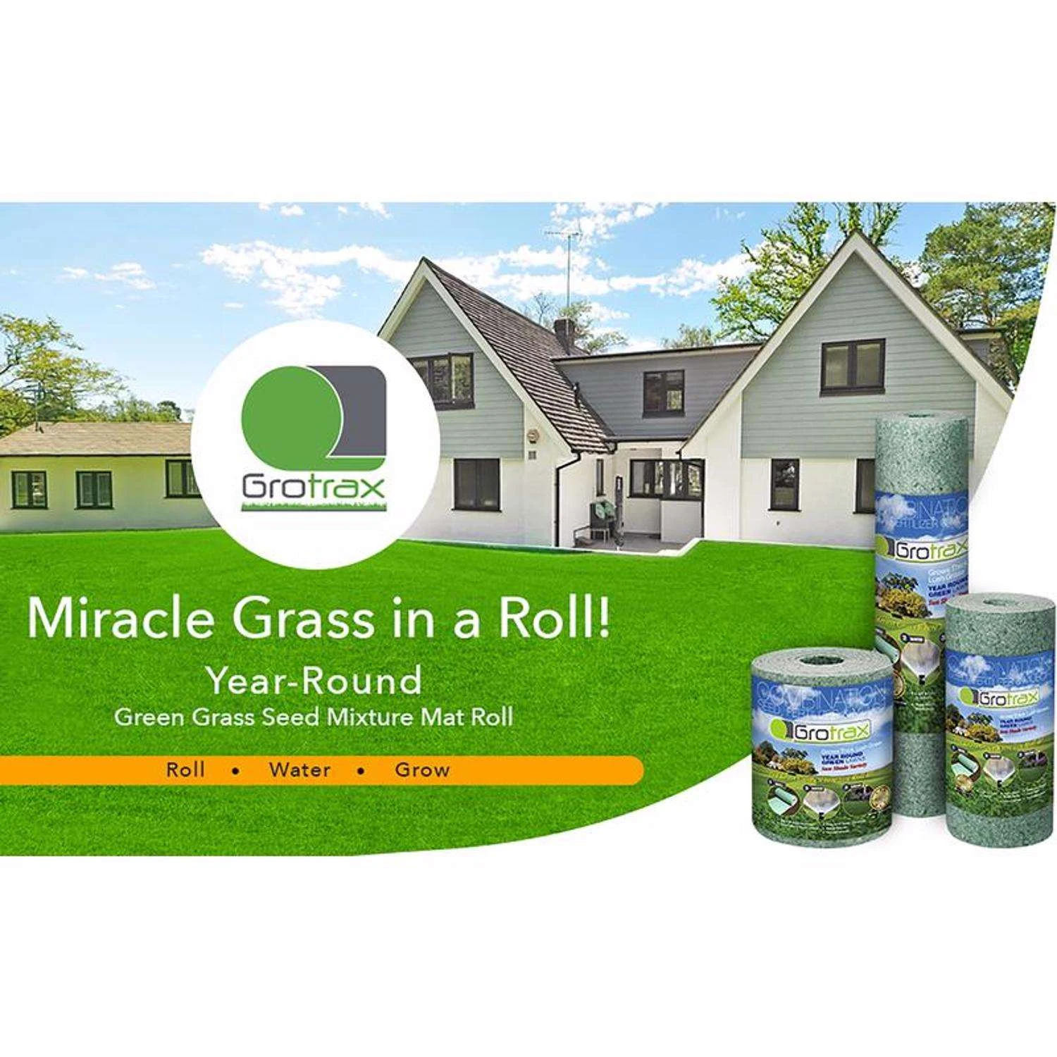 Growtrax Seed – Every Seed Perfectly Placed at 120% of its recommended planting rate. Each Growtrax roll contains the latest technology, high-quality seed from leading Oregon growers. Growtrax Micro Pellet Fertilizer produces fast germination and uniform growth. Our proprietary blend contains immediate use Nitrogen, Phosphorus, Potassium, plus a patented polymer-coated 120 day, Nitrogen time release fertilizer. Growtrax Biodegradable Fabric – patent-pending and super absorbent. Once rolled out and watered, it sticks to the ground. Each seed is then surrounded by fertilizer and held in place between two bio fabric layers, holding 6 times their weight in water. Simply roll, water and watch it grow. Lightweight, easy to install, grows grass fast Cheaper, easier and lighter than traditional sod Bio fabric holds 6x times its weight in water Perfect for sun, shade and slopes Bio fabric prevents seeds from washing away Sticks to the ground, no staking required