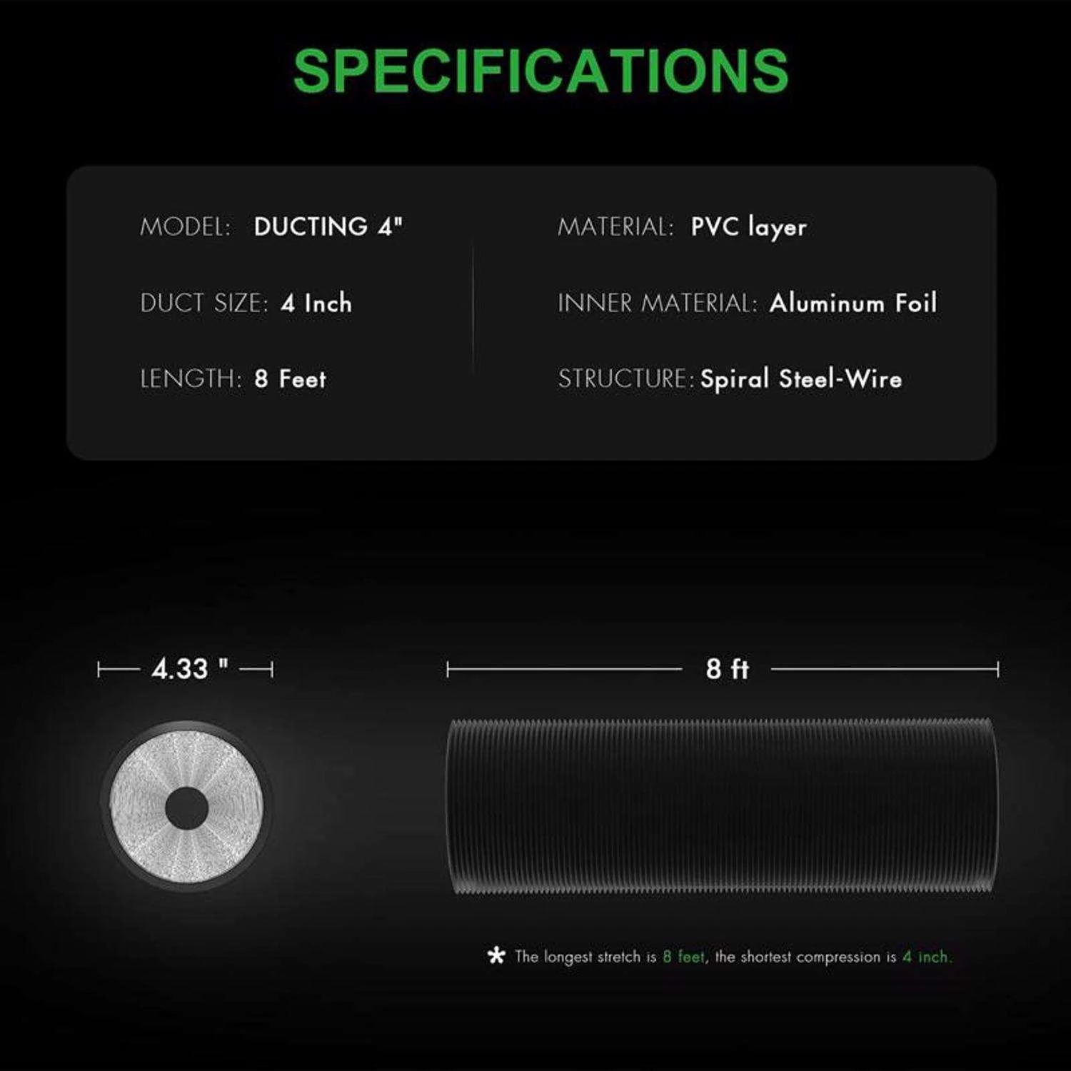 Multi-functional: this ventilation combo removes heat and eliminates the undesirable ill-smelling odors in the grow tent to solve air delivery problems without major system rework or expense. One control switch for 3 settings: variable speed, off, high, med, low. To avoid the risk of burning out the fan motor, the controller does not adjust below 50%. Free pre-filter included: we recommend replacing the pre-filter every 6 months to protect your filter. 1050 + IAV Australian RC412 activated carbon. 50 mm. carbon layer of thickness for higher absorption and performance. Low noise design reduce sound output to just 30db Temperature endurance range from -22 – 212 degree F Flexible length for exhaust fan blower or inline fan