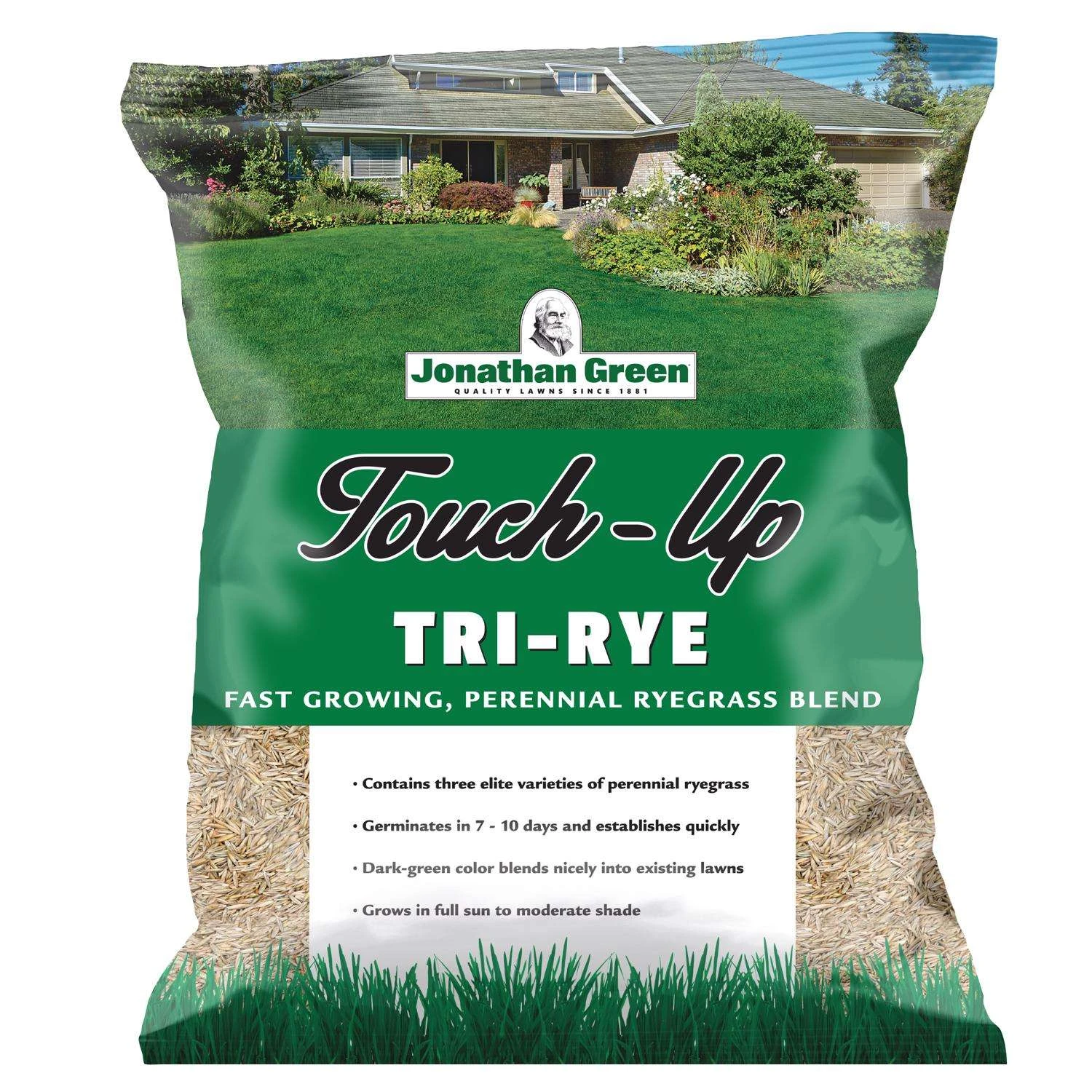 Jonathan Green Touch-Up Tri-Rye Perennial Ryegrass is a 100% premium perennial ryegrass blend. The three perennial ryegrasses in this mixture are all dark-green in color and fast to germinate so they fill in bare spots and thicken the lawn quickly. This mixture has been used on golf courses to overseed fairways, tees and roughs for years. This product is also used in the fall to overseed warm-season grasses such as bermudagrass which goes dormant and turns brown when the weather turns cold. Touch Up provides a green carpet during the winter months and recedes when the warm season grasses start growing again during spring. Touch Up is very tolerant of heavy traffic situations and contains beneficial endophytes making the lawn naturally insect resistant. Contains quick-germinating, turf-type perennial ryegrasses Great for overseeding entire lawns Incredible dark-green color Germinates in 7 – 10 days