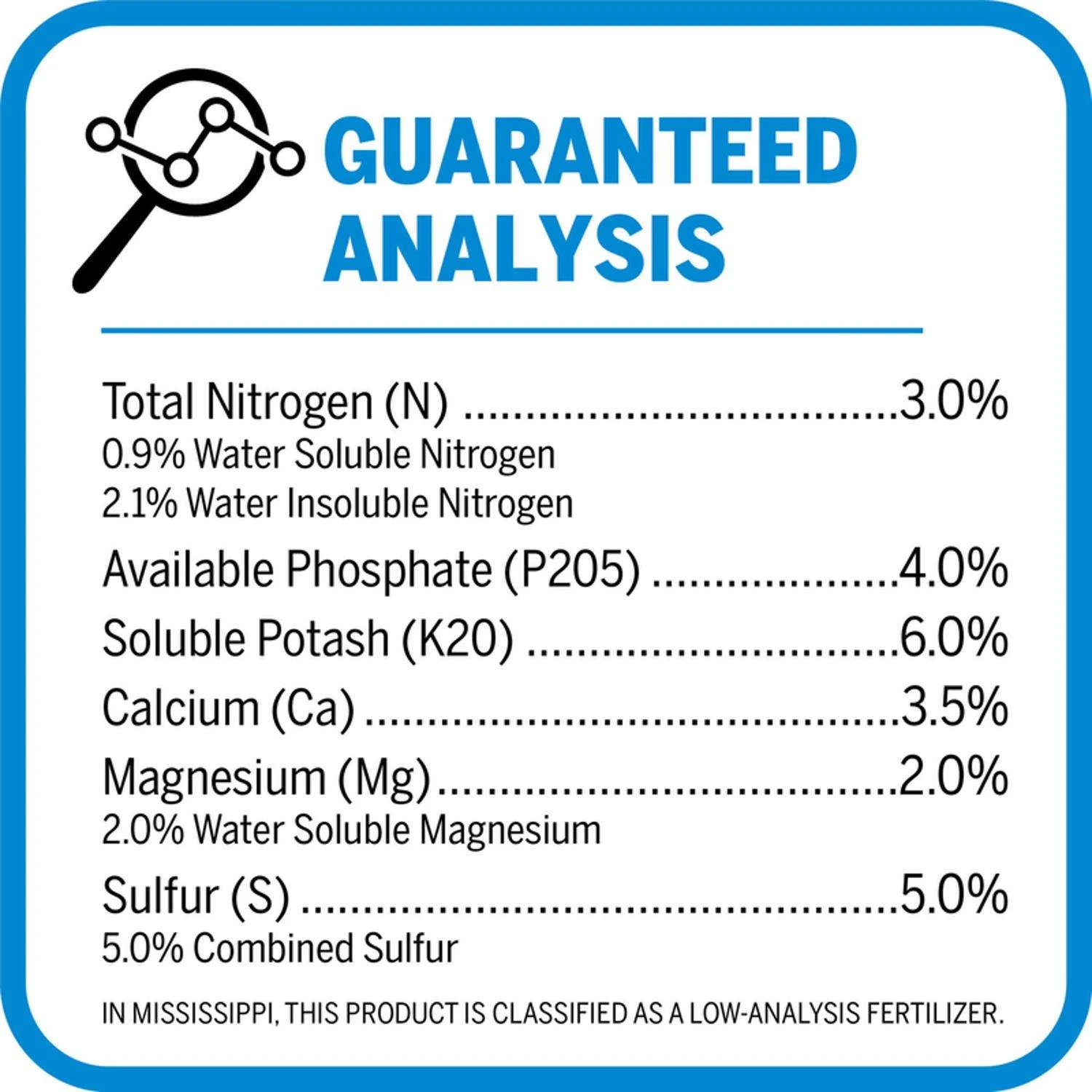 | Fertilizer Analysis (N-P-K) | 3-4-6 |