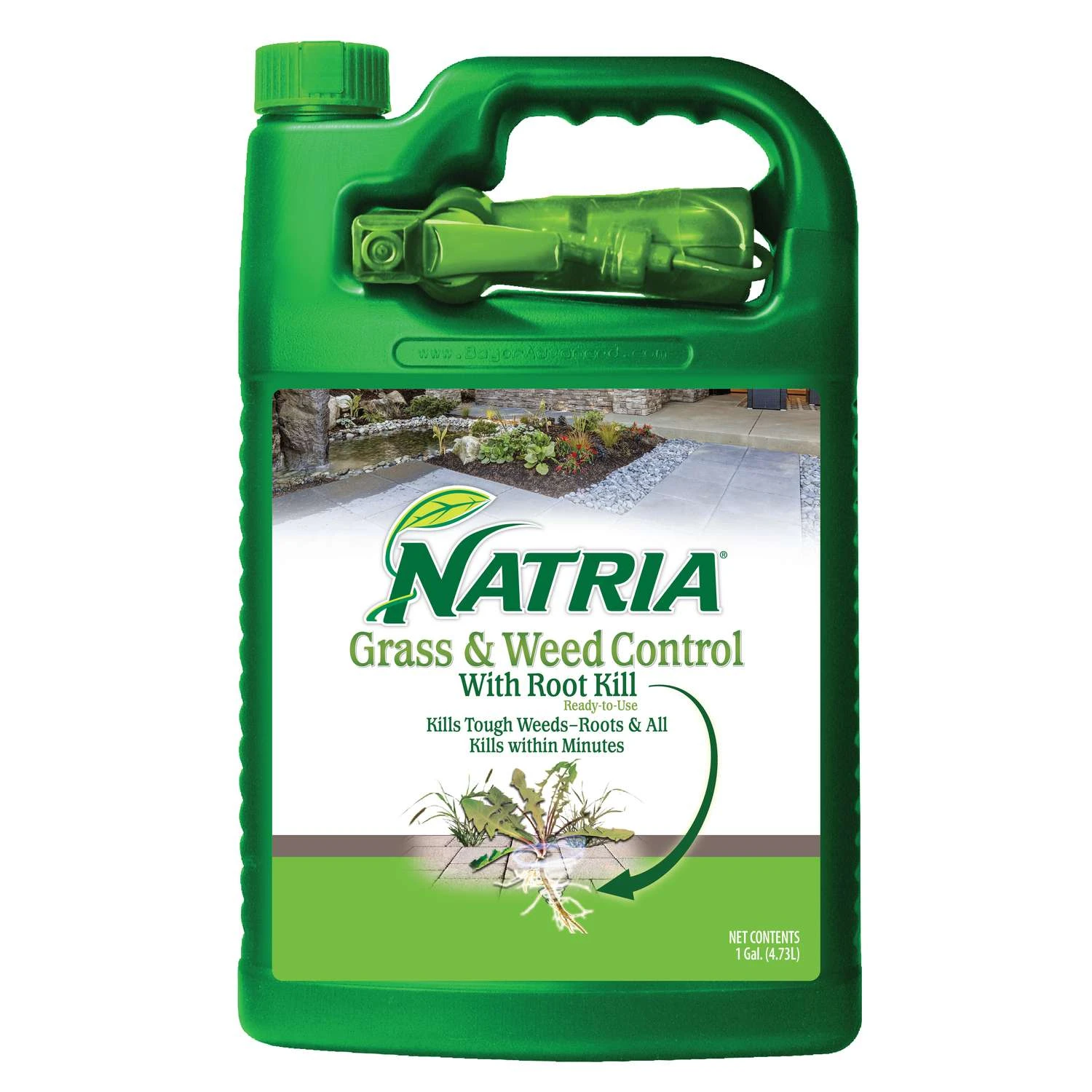 Finally, a natural way to kill unwanted grass and weeds to their roots with Natria Grass and Weed Control with Root Kill technology. This fast acting formula is approved for use in and around edibles and makes for a great herbicide to use around the home and garden. Our naturally-derived products appeal to consumers who want non-synthetic solutions to manage pests, weeds and diseases. Non-selective control of listed grasses, weeds and moss Works fast! See visible results in minutes Does not stain bricks, concrete or asphalt For use on patios, driveways, sidewalks and flower beds