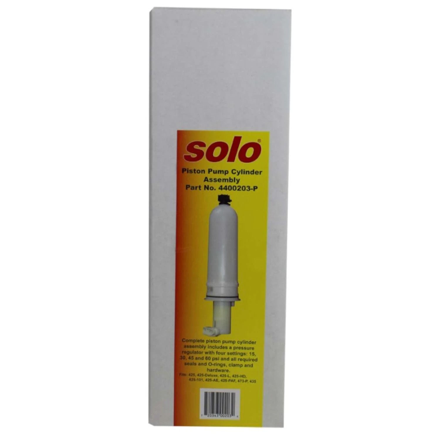 Original equipment manufacturer’s parts kit for repairing Solo backpack sprayers with piston pumps. Accept no imitations. Only original equipment parts and accessories are made to the uncompromising standard set by Solo. Complete replacement piston pump assembly with regulator valve models: 425, 425-101, 425-Deluxe, 473-P and 435. Solo original equipment parts and accessories. Complete Piston Pump Assembly with pressure control valve. Fits Solo 425-DELUXE, and 425-PROF.