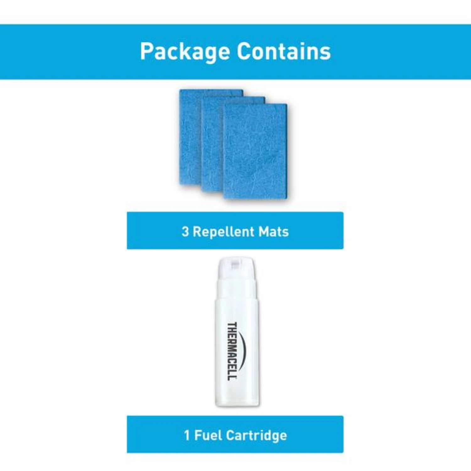 | What's Included | INCLUDES: One 12-hour fuel cartridge, and three 4-hour repellent mats |